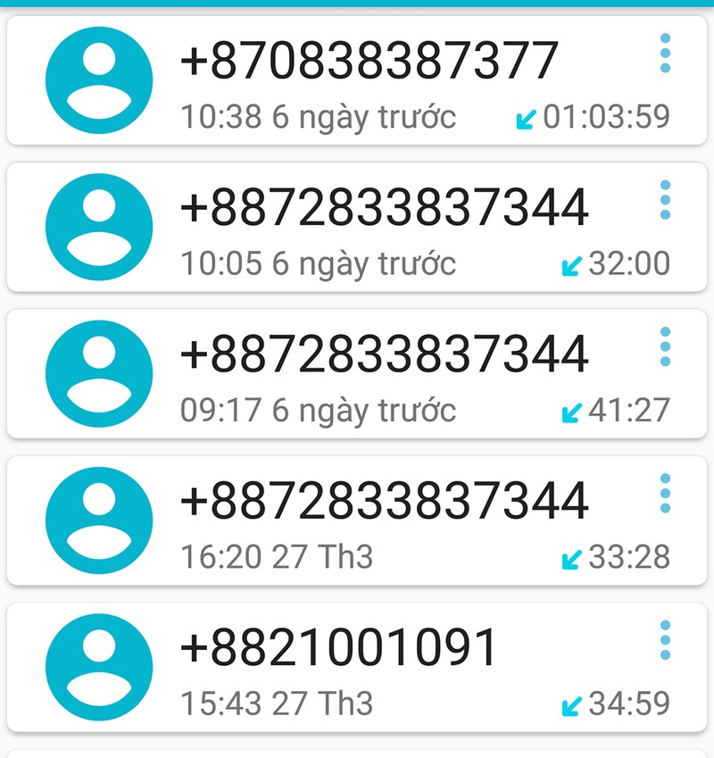 Các số điện thoại của nhóm lừa đảo gọi tới cho chị Thương. Ảnh: NVCC
