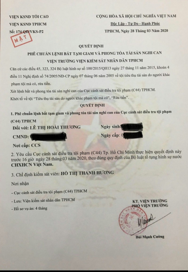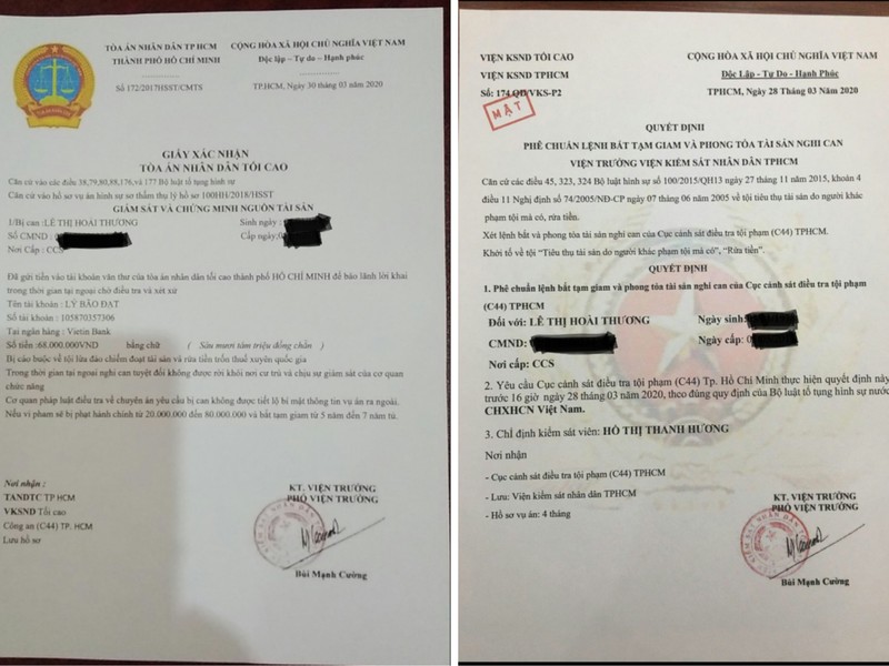 Nhóm lừa đảo làm giả văn bản của VKS gửi cho chị Thương để đe dọa. Ảnh: NVCC