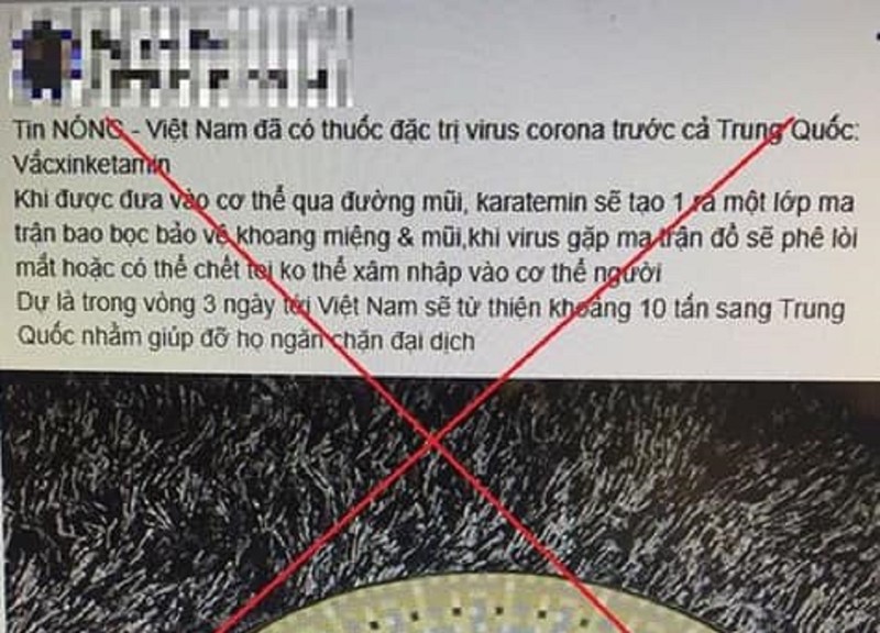 Trước đó, qua công tác nắm tình hình, cơ quan công an phát hiện N.Đ dùng tài khoản Facebook cá nhân đăng tải nội dung: “Tin nóng: Việt Nam đã có thuốc đặc trị virus corona trước cả Trung Quốc: Vắcxinketamin. Khi được đưa vào cơ thể qua đường mũi, karatemin sẽ tạo ra một lớp ma trận bao bọc bảo vệ khoang miệng và mũi, khi virus gặp ma trận đồ sẽ phê lòi mắt hoặc có thể chết toi không thể xâm nhập vào cơ thể người. Dự là trong vòng 3 ngày tới Việt Nam sẽ từ thiện khoảng 10 tấn sang Trung Quốc nhằm giúp đỡ họ ngăn chặn đại dịch”.